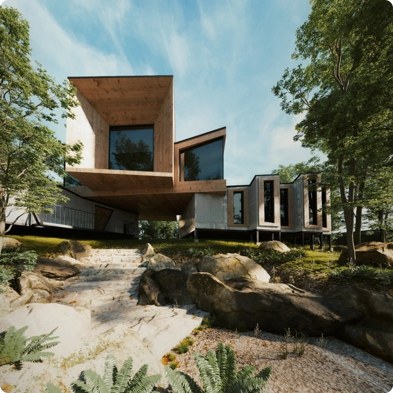 Casas uni-familiares que demonstram como sustentabilidade não é luxo, mas inteligência. Materiais locais, design bioclimático e tecnologia apropriada criam ambientes que aquecem no inverno e arrefecem no verão naturalmente.